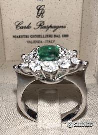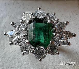 ANELLO ORO 18kt. CON DIAMANTI E SMERALDO ZAMBIA