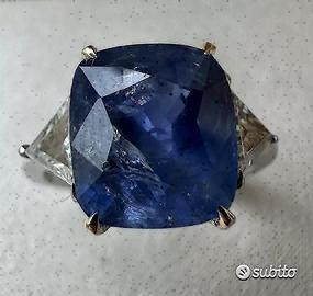 PESO ORO ANELLO : gr. 4,602 DIAMANTI ct. : 0,82 colore : bianco commerciale - purezza VS ZAFFIRO : ct. 5,19MISURA DEL DITO: 13 1/2