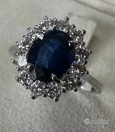 ANELLO ORO 18kt. CON DIAMANTI E ZAFFIRO BLU OVALE