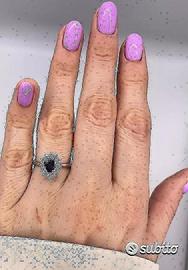 ANELLO IN ORO BIANCO 750°/°° - 18 carati CON DIAMANTI* NATURALI TAGLIO BRILLANTE E ZAFFIRO NATURALE, DI TAGLIO A CUORE DI PROVENIENZA CEYLON (SRY-LANKA) PESO ANELLO gr. : 3,50 12 DIAMANTI ct. : 0,25 - colore : G - purezza : VS ZAFFIRO: ct. 0,72 MISURA DEL DITO: 14 (è possibile cambiare misura dell'anello per qualsiasi informazione contattateci) altre foto a richiesta via email spedizione con assicurata tramite Poste Italiane