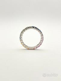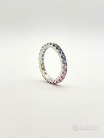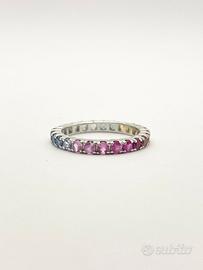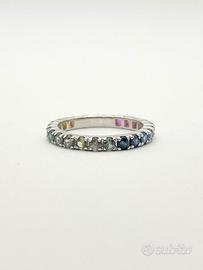 Anello in oro bianco ( 750‰ ) di grammi 2.90, modello eternè con zaffiri naturali multicolor forma tonda e taglio sfaccettato di ct 1.85 totali.