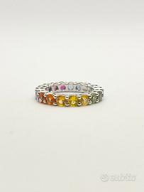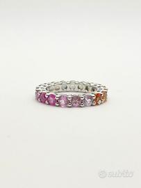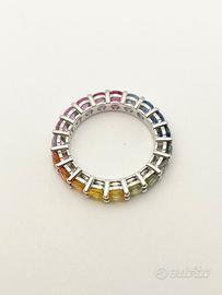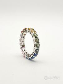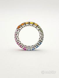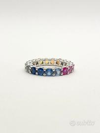 Anello in oro bianco ( 750‰ ) di grammi 4.50, modello eternè con zaffiri naturali multicolor forma tonda e taglio sfaccettato di ct 4.30 totali.