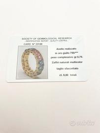 Anello in oro giallo ( 750‰ ) di grammi 5.70, modello eternè con zaffiri naturali multicolor taglio sfaccettato di ct 8.80 totali.