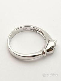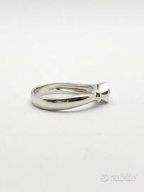 Anello in oro bianco 18KT (750 ‰) di grammi 4.75 modello solitario, con diamante naturale forma tonda e taglio a brillante di ct 0.30; purezza VVS colore G. Scritta DAMIANI.