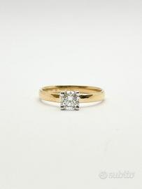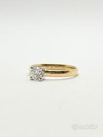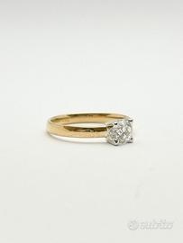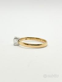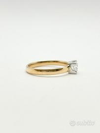 Anello in oro bianco e giallo 18KT (750 ‰) di grammi 2.80 modello solitario con diamante naturale forma tonda e taglio a brillante di ct 0.51; purezza IF colore D certificato HRD, firmato SALVINI.