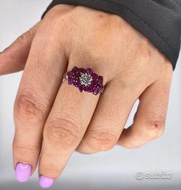 ANELLO ORO 18kt. DIAMANTE E RUBINI PINKISH