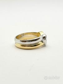 Anello in oro bianco e giallo 18KT (750 ‰) di grammi 6.80 con diamanti naturali forma tonda e taglio a brillante di ct 0.20 totali; purezza VVS colore G e zaffiro giallo naturale taglio sfaccettato, a scritta MANFREDI.