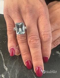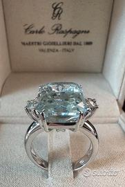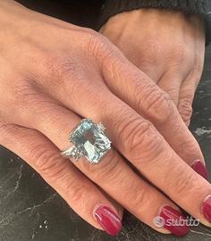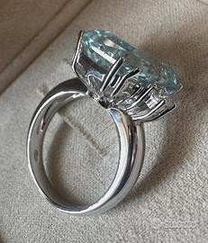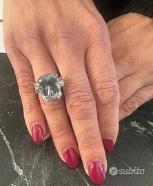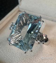 ANELLO ORO 18kt. DIAMANTI E GRANDE ACQUAMARINA