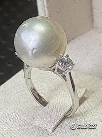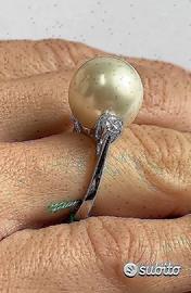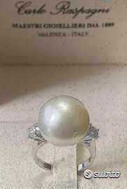 ANELLO ORO 18kt. DIAMANTI E GRANDE PERLA AUSTRALIA