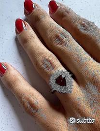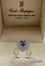 ANELLO ORO 18kt. DIAMANTI E RUBINO NATURALE CUORE