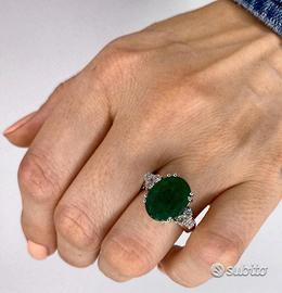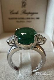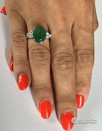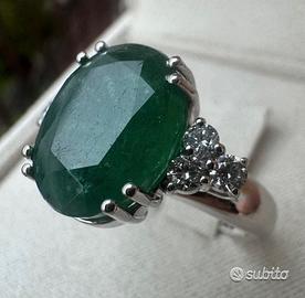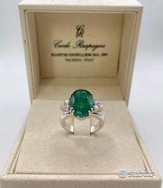 ANELLO ORO 18kt. DIAMANTI E SMERALDO CERT. 7,10