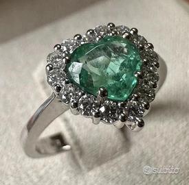 E SMERALDO COLOMBIANO NATURALE, DI TAGLIO A CUORE