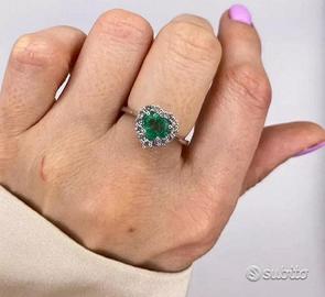 ANELLO ORO 18kt. DIAMANTI E SMERALDO COLOMBIANO