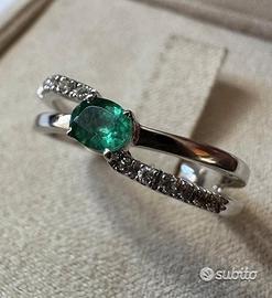 ANELLO ORO 18kt. DIAMANTI E SMERALDO COLOMBIANO