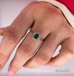 ANELLO ORO 18kt. DIAMANTI E SMERALDO GARANZIA