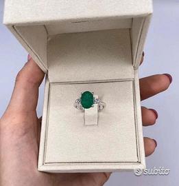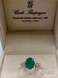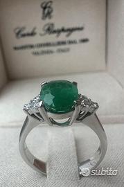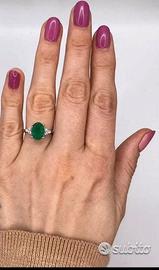 ANELLO ORO 18kt. DIAMANTI E SMERALDO OVALE