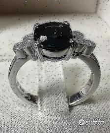 ANELLO ORO 18kt. DIAMANTI E ZAFFIRO BLU DARK SIAM