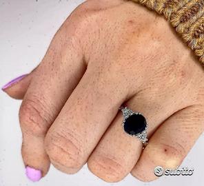 ANELLO ORO 18kt. DIAMANTI E ZAFFIRO BLU NATURALE