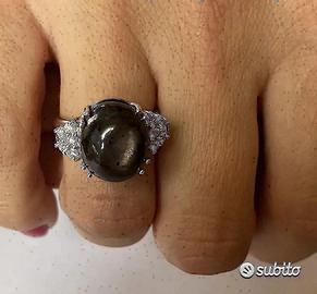 ANELLO ORO 18kt DIAMANTI E ZAFFIRO OCCHIO DI GATTO