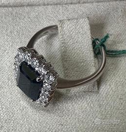 ANELLO ORO 18kt. DIAMANTI E ZAFFIRO OTTAGONALE
