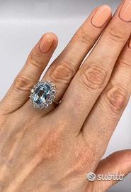 ANELLO ORO 18kt DIAMANTI ED ACQUAMARINA ct. 3,81