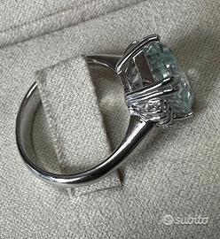 ANELLO ORO 18kt. DIAMANTI ED ACQUAMARINA NATURALE