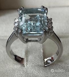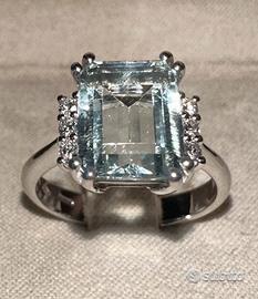 ANELLO IN ORO BIANCO 750°/°° - 18 carati CON DIAMANTI* NATURALI TAGLIO BRILLANTE ED ACQUAMARINA NATURALE, DI TAGLIO SMERALDO 6 DIAMANTI ct. : 0,14 colore : G / purezza : VS ACQUAMARINA ct. : 3,78 PESO ORO ANELLO gr. : 4,80 MISURA DEL DITO : 14 ( possibile cambiare misura dell'anello per qualsiasi informazione contattateci) spedizione con assicurata tramite Poste Italiane