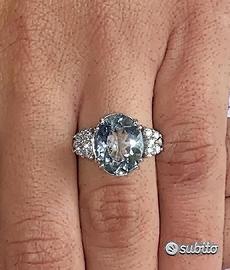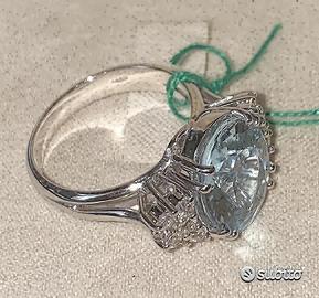 ANELLO IN ORO BIANCO 750°/°° - 18 carati CON DIAMANTI* NATURALI TAGLIO BRILLANTE ED ACQUAMARINA NATURALE, DI TAGLIO OVALE 10 DIAMANTI ct. : 0,25 colore : G / purezza : VS ACQUAMARINA ct. : 4,59 (misura 13 mm. x 10,5 mm.) PESO ORO gr. : 7,00 MISURA DEL DITO: 13 (è possibile cambiare misura dell'anello per qualsiasi informazione contattateci) altre foto richieste via email spedizione con assicurata tramite Poste Italiane
