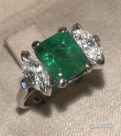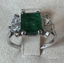 ANELLO ORO 18kt. DIAMANTI MARQUISE E SMERALDO