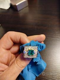 Anello uomo in oro 18kt 17,5 g con centrale smeraldo colombiano da 2,80 ct e 1,50 ct diamanti naturali
