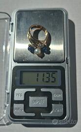 Vendo: Splendido anello in Oro Giallo 750 (18 Carati) Ottima manifattura Peso: 11,3 grammi 2 Zaffiri blu taglio cabochon e 4 Diamanti naturali 1 Perla coltivata centrale dalla bellissima luce. Usato, ma in condizioni eccellenti. Il gioiello è stato appena lucidato professionalmente ed è pronto per essere indossato. Misura: 13 (visibile nelle foto su anelliera). Note sulla vendita: Il gioiello NON è punzonato 750 poiché portato a misura più piccola. Sono disposto, naturalmente in Torino, a farlo visionare presso il vostro orafo o professionista di fiducia, molto volentieri. Prezzo: 1100 € Consegna solo a mano in Torino, preferibilmente presso vostro orafo di fiducia. Pagamento con bonifico immediato. Le condizioni NON sono negoziabili. Non rispondo a profili poco chiari. Grazie dell'attenzione