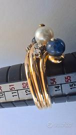 Anello oro 18kt zaffiri cabochon diamanti, vintage