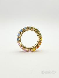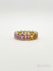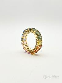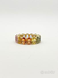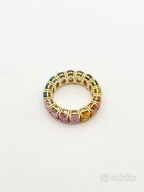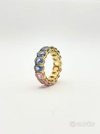 Anello in oro giallo ( 750‰ ) di grammi 6.35, modello eternè con zaffiri naturali multicolor forma ovale e taglio sfaccettato di ct 9.73 totali.