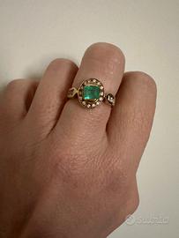 Con uno smeraldo ( credo ) e pietre incolori ma non so che pietre siano. Vintage anni 80 Mai indossato