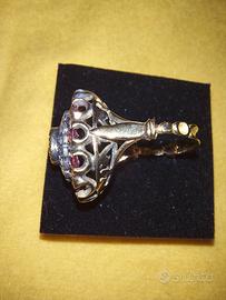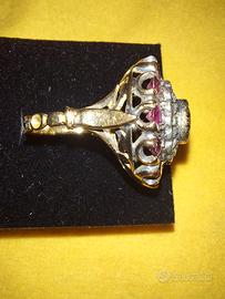 Anello oro 18 karati con 12 rubini rossi+16 brillantini bianchi+ rubino centrale da 5,5mm, diametro anello 23,5mm × 19mm anni 60 peso 10 grammi tutte le pietre sono integre l'anello è in ottime condizioni il prezzo non è trattabile il pagamento solo con bonifico bancario.