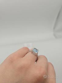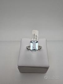 Anello Oro Bianco 18Kt, Acquamarina e Diamanti Pavè