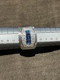 Bellissimo anello oro bianco 18 kt con zaffiri e diamanti nuovo .