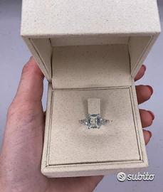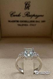 ANELLO ORO BIANCO 18kt. DIAMANTI ED ACQUAMARINA