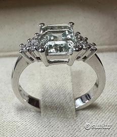 ANELLO IN ORO BIANCO 750°/°° - 18 carati CON DIAMANTI* NATURALI TAGLIO BRILLANTE ED ACQUAMARINA NATURALE, DI TAGLIO SMERALDO 6 DIAMANTI ct. : 0,14 colore : G / purezza : VS ACQUAMARINA ct. : 1,55 PESO ORO ANELLO gr. : 3,50 MISURA DEL DITO: 12 ( possibile cambiare misura dell'anello per qualsiasi informazione contattateci) spedizione con assicurata tramite Poste Italiane