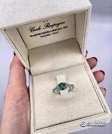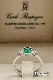 ANELLO ORO BIANCO 18kt. DIAMANTI TRIAL E SMERALDO