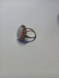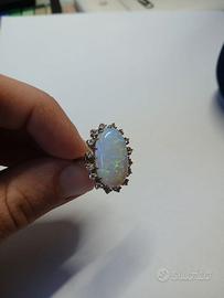 Anello, Oro Bianco 585, Opale Australiano 48k, 16D