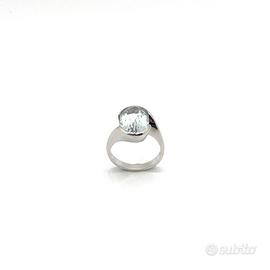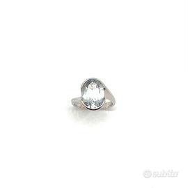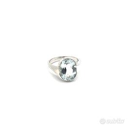 Anello realizzato in oro bianco 18kt (750) con Acquamarina naturale taglio ovale sfaccettato di ct. 5,00 ca. Peso complessivo 7,40 gr