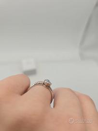 Anello Oro Bianco, Acquamarina e Diamanti Pavè