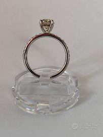 Vendo anello in oro bianco con un diamante grande centrale (0.90 ct natural fancy light yellowish brown) e altri 16 piccoli diamanti circostanti (0.19 ct) per un totale di 1.09 ct.