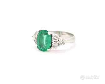 Un gioiello di straordinaria bellezza e raffinatezza, questo anello in oro bianco 18 carati (750/000) è il simbolo della perfezione artigianale. Con un peso di 7,4 grammi e una misura 19, presenta uno splendido smeraldo centrale da 3,47 carati, dal taglio ovale, che emana un’intensa e affascinante tonalità di verde. I diamanti, per un totale di 1 carato, sono incastonati con un taglio brillante che ne esalta la purezza (VS1) e il colore (G), creando un gioco di luci che arricchisce ulteriormente il design.