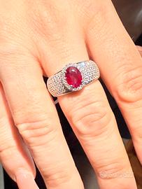 Anello oro 750 bianco diamanti e rubino