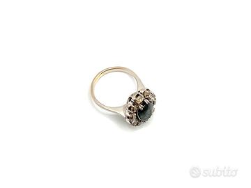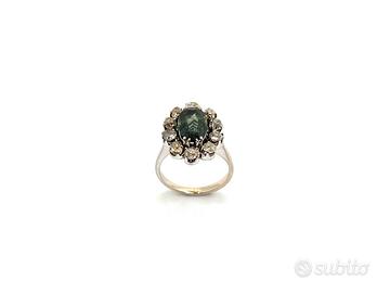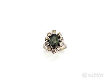 Anello realizzato in oro bianco 18kt (750‰) con diamanti brown naturali ct. 0,95 ca. tot. Zaffiro petrolio ct. 2,60 ca. Peso complessivo gr. 5,45 misura 10 Art. 19937