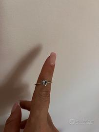 Anello in oro bianco e con pietra zirconia. Misura di 2x2cm Tenuto molto bene e compreso di certificato di autenticità.