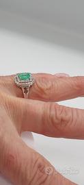 anello realizzato in oro bianco 18Kt Smeraldo centrale forma ottagonale Carati 0,85 giro di diamanti Ct. 0,37 il gioiello è corredato di elegante confezione regalo e garanzia dettagliata il gioiello è in offerta con il 30% di sconto da € 2120,00