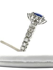 Anello fantasia con Zaffiro ovale e Diamanti in Oro Bianco 18kt (750) - Grammi 5,10